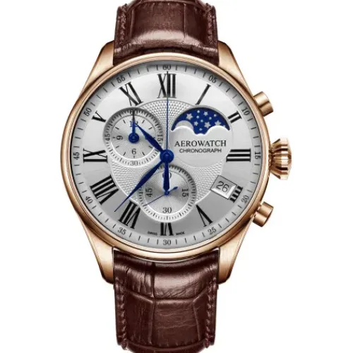 Aerowatch Lederarmband-Les Grandes Classiques Chronograph Mondphase – A 78990 RO03
