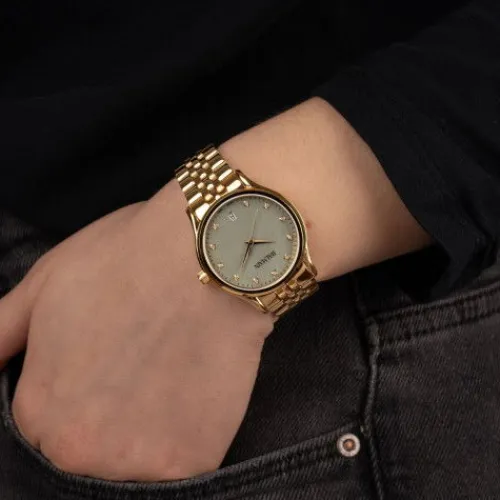 Geschlecht Damen Produktart Uhren Anzeige analog Farbe Gehäuse gold Farbe Armband gold Farbe Zif…