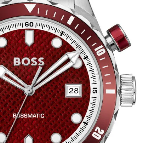Setzen Sie ein Statement – mit der Boss Bossmatic Uhr mit rotem Ziffernblatt