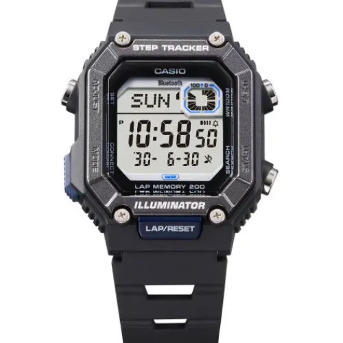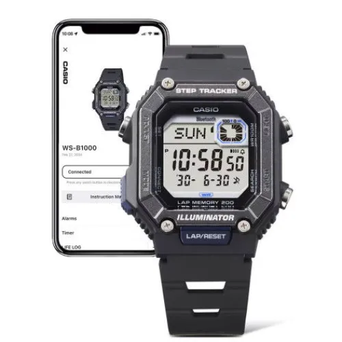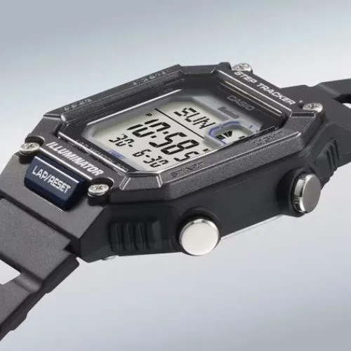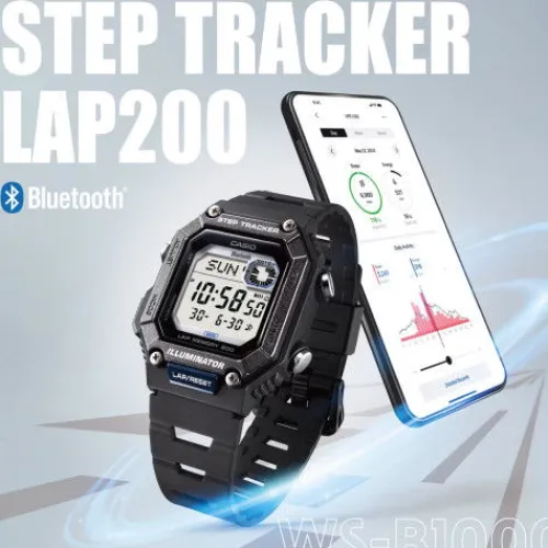 Die WS-B1000 verfügt über eine 1/100-Sekunden-Stoppuhr mit einem …Speicher für 200 Runden sowie einen Schrittzähler, der die Nachverfolgung der täglichen Fitnessaktivitäten vereinfacht. Der integrierte Beschleunigungsmesser erfasst Körperbewegungen und zählt automatisch Schritte. Zusätzlich zur Anzeige der täglichen Schritte auf dem LCD zeigt die Uhr eine Grafik, die den Fortschritt bei der Erreichung deiner Ziele darstellt. Diese Uhr unterstützt deinen aktiven Lebensstil.