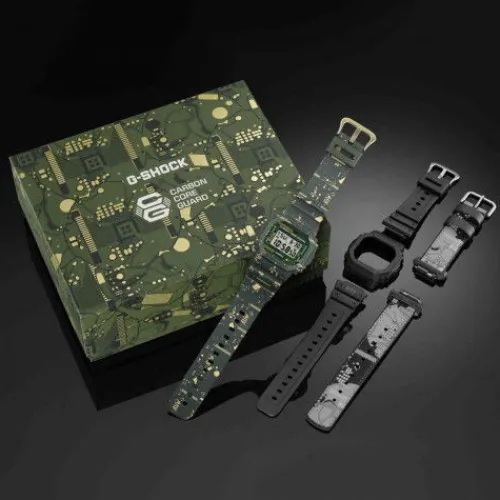 Die DWE-5600CC ist ein G-SHOCK Set mit frei austauschbaren Armbändern und Lünetten. Die beliebte G-SHOCK in der ikonischen 8-eckigen Form ist mit der Carbon Core Guard-Struktur ausgestattet, mit einem kohlefaserverstärkten Gehäuse für zusätzliche Stoßfestigkeit.