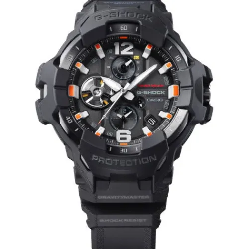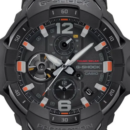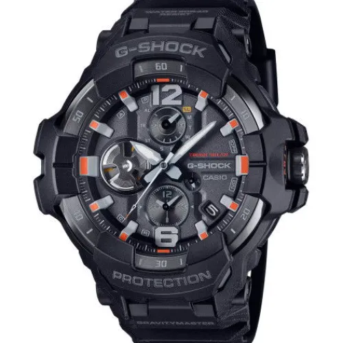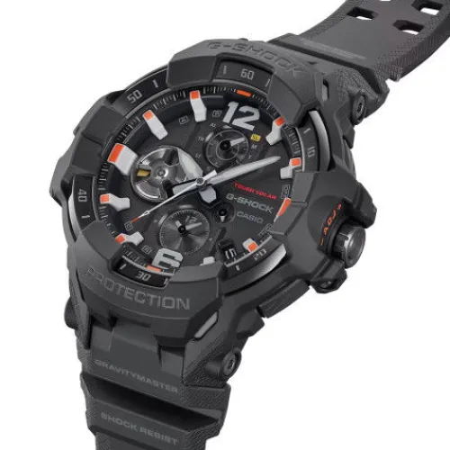 Die von Flugzeugen inspirierte organische Form der GRAVITYMASTER GR-B300EC wird durch ein nahtloses Außendesign zum Ausdruck gebracht. Die Carbon Core Guard-Struktur der Uhr und das breite 3D-Zifferblatt sorgen für Langlebigkeit, Lesbarkeit und eine angenehme Passform. Darüber hinaus stehen dir viele praktische Funktionen zur Verfügung, z. B. die gleichzeitige Anzeige der Uhrzeit in zwei Städten, eine Flugprotokoll-Speicherfunktion zur Aufzeichnung zurückgelegter Strecken und vieles mehr.