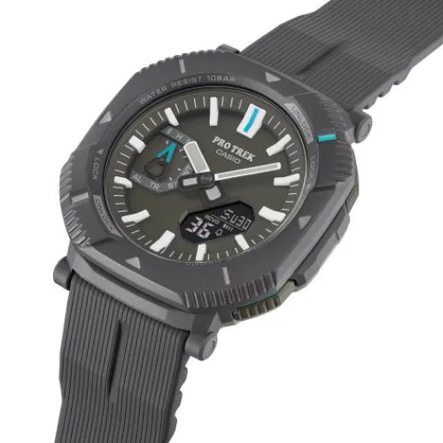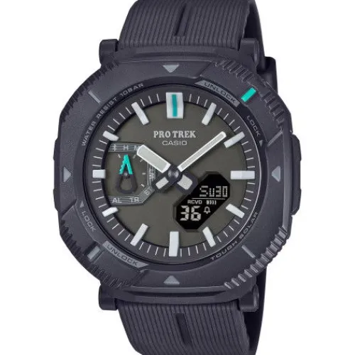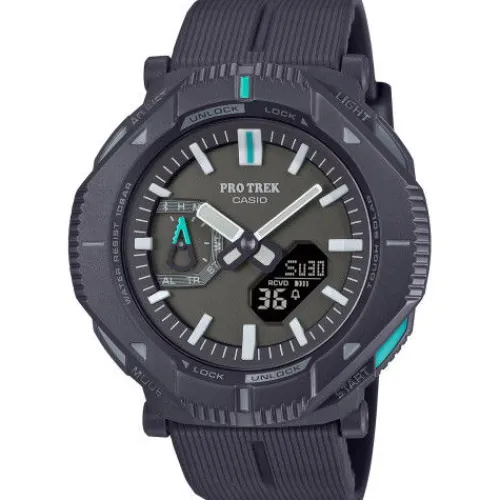 Die PRJ-B001 bietet die erste drehbare Schutz-Lünette in der PRO TREK Serie. Dreh die Lünette, um zwischen zwei verschiedenen Stilen zu …wechseln. Das stilvolle, eckige Design ergänzt dein Alltagsoutfit und verdeckt die Tasten, um versehentliches Drücken zu verhindern, sei es beim Spaziergang oder in der Stadt. Dreh die Lünette um 45 Grad und du hast Zugriff auf die Tasten und Funktionen, ideal fürs Wandern oder Training.