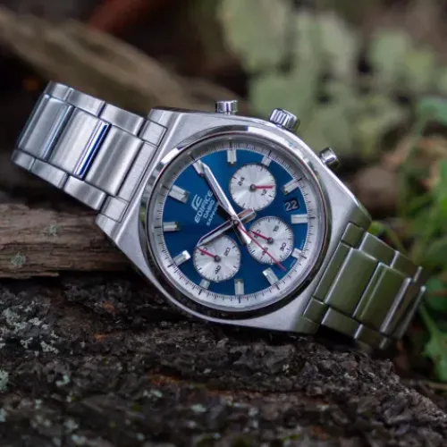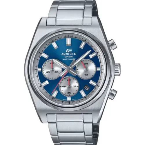 Wir stellen vor: Der vom Sportwagen inspirierte klassische EDIFICE Chronograph. Markante Strichmarkierungen verbinden sich mit dem 3-6-9-Layout des Zifferblatts zu einem zeitlosen sportlichen Design. Der kleine Gehäusedurchmesser von 40mm sorgt für ein elegantes Erscheinungsbild und einem …angenehmen Tragekomfort. Dieser Zeitmesser mit Saphirglas, Edelstahlgehäuse und stabilem Edelstahlarmband ist bis zu 10 bar wasserdicht. Das sportlich-klassische Design der Uhr passt sowohl zu zwanglosen Anlässen als auch zu Geschäftsterminen.