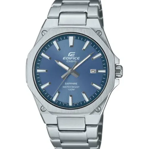 Dieses analoge Modell mit drei Zeigern und Datumsanzeige verfügt über ein schlankes Gehäuse von nur 7,8 mm Höhe und zeichnet sich so durch eine optimale Passform aus. Die Uhr verfügt über eine flache, achteckige Lünette mit Hairline-Finish und …einem entsprechend puristischen und eleganten Design. Das Zifferblatt ist ebenfalls mit zartem Hairline-Finish versehen. Dazu verfügt die EFR-S108 über ein kratzfestes Saphirglas.