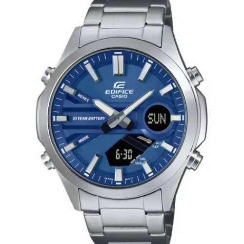 Mach dich frei, um dich auf das Leben zu konzentrieren. Hol dir die EFV-C120 Analog-Digital-Kombi-Uhr mit einer 10-Jahres-Batterie, um die du dich ewig nicht kümmern musst. Die EFV-C120 macht da weiter, wo die EFV-C110 aufgehört hat. Sie bietet alle Vorteile einer analog-digitalen …Kombinationsuhr und eine lange Batterielebensdauer, aber in einem noch kompakteren, schlankeren Design. Du wirst die Vielzahl an Funktionen lieben, darunter Weltzeit, Stoppuhr, Alarm, Countdown-Timer und Wasserdichtigkeit bis 100 Meter.