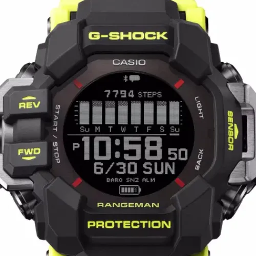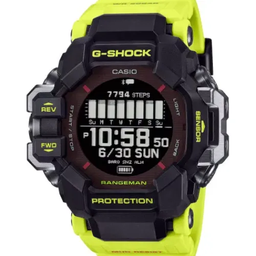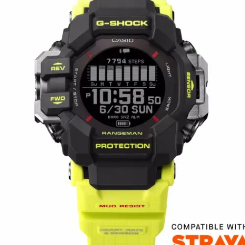 Der RANGEMAN GPR-H1000RY ist staub-, schlamm- und stoßfest und mit sechs Sensoren ausgestattet, die unter anderem deine Herzfrequenz messen. Dank integriertem GPS kannst du Standort, Entfernung und Geschwindigkeit tracken. Überwache deine Fitness in Echtzeit bei 9 verschiedenen Aktivitäten, darunter Trekking.