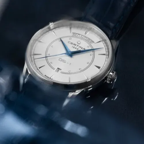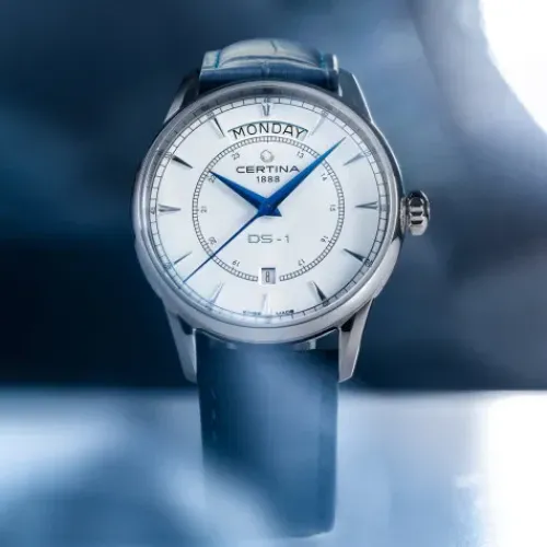 Bei der DS-1 Day-Date kommt jeder Tag gross raus: In einem geschwungenen Fenster bei 12 Uhr ist der Wochentag abzulesen, dessen Anzeige von einem Datumsfenster ergänzt wird. Elegante Dauphine-Zeiger und gewölbtes Saphirglas verleihen der Uhr mit dem hochwertigen Automatikwerk edlen …Retro-Charakter.