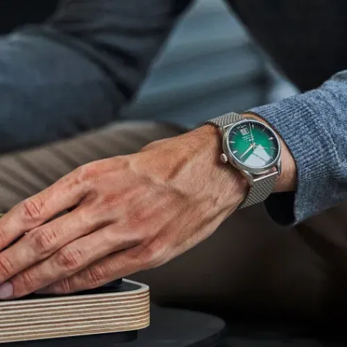 Pünktlich zum 60. Geburtstag von DS Concept verzeichnet die DS-1 Big Date Powermatic 80 Special Edition 60 Jahre Double Security mit verbesserter Widerstandsfähigkeit dank neuer antimagnetischer Technologie. Sportlich und elegant in jeder Hinsicht – mit coolem Milanaise-Armband, grünem …Zifferblatt und leicht ablesbarer „Big Date“-Datumsanzeige bei 6 Uhr.