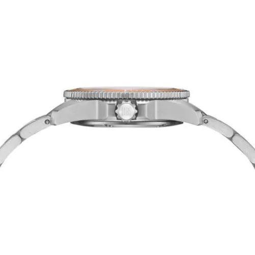 Inspiriert von der faszinierenden Unterwasserwelt bringt Certina die leuchtenden Farben des Meeresbodens direkt an Ihr Handgelenk. Mit der DS Action Lady vereint der Schweizer Uhrenhersteller maritimes Flair und präzise …Uhrmacherkunst in einem vielseitigen Zeitmesser. Das silberne Edelstahlgehäuse mit einem Durchmesser von 35 mm umrahmt ein schimmerndes orangefarbenes Perlmuttzifferblatt, das von einer harmonisch abgestimmten Lünette ergänzt wird. Diese Farbkomposition erinnert an die lebendige Vielfalt eines Korallenriffs und sorgt für einen unvergesslichen Blickfang.
