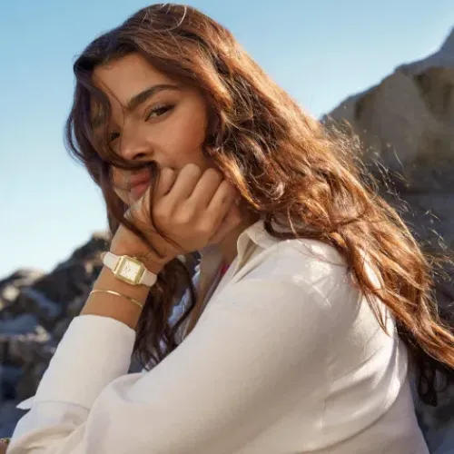 Eine elegante Ergänzung für jede Uhrenkollektion: die Gracieuse Petite Uhr für Damen. Mit quadratischem, goldfarbenem 24-mm-Gehäuse, weißem Zifferblatt und 14-mm-Lederarmband in Kroko-Optik in Weiß. Das weiße Lederband verleiht Ihrem Outfit einen Hauch von Farbe und bleibt dank seiner …klassischen goldenen und weißen Details schick. Passen Sie das Aussehen Ihrer Uhr ganz einfach mit jedem 14-mm-Armband an.