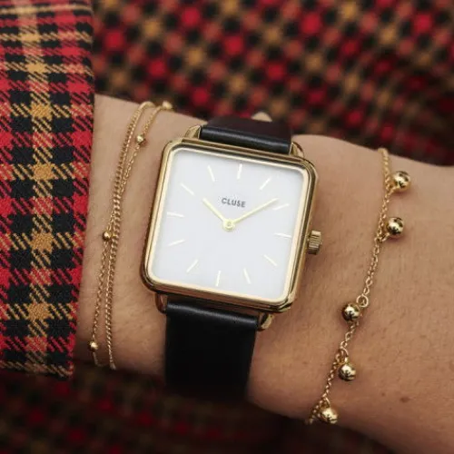 Dieses hochwertige, 16 mm breite Uhrarmband verleiht jeder CLUSE-Uhr das gewisse Etwas. Das schwarze Armband besticht durch die hochwertige Lederabsteppung. Details in Gold-Metallic auf Schließe und Schlaufe vervollständigen das Design. Mix & Match ist angesagt! Dank Klickmechanismus können Sie …Ihre CLUSE-Uhr mit einem beliebigen Uhrarmband derselben Größe kombinieren.