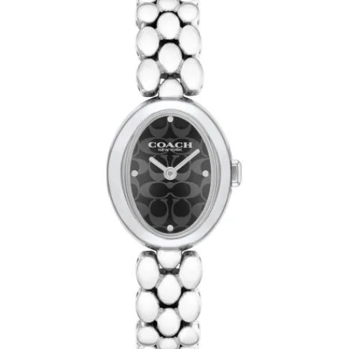 • Markantes Zifferblatt: Schwarzes Zifferblatt mit dezentem Coach-Logo und silberfarbenen Punktindizes