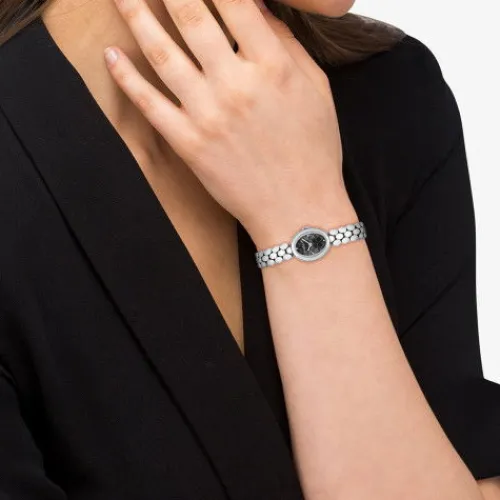 • Edles Design: Poliertes Edelstahlgehäuse und -armband in Silber
