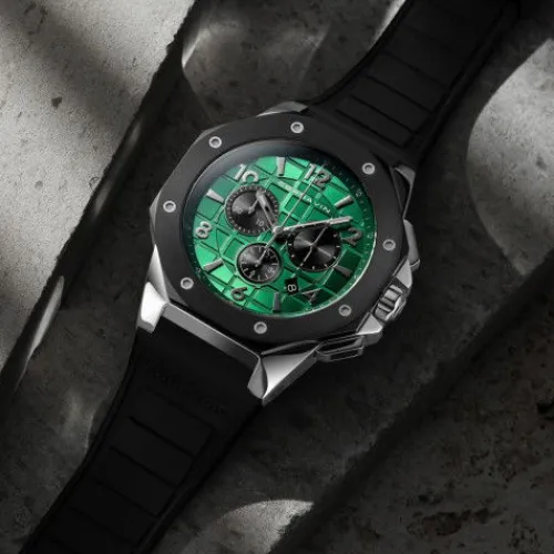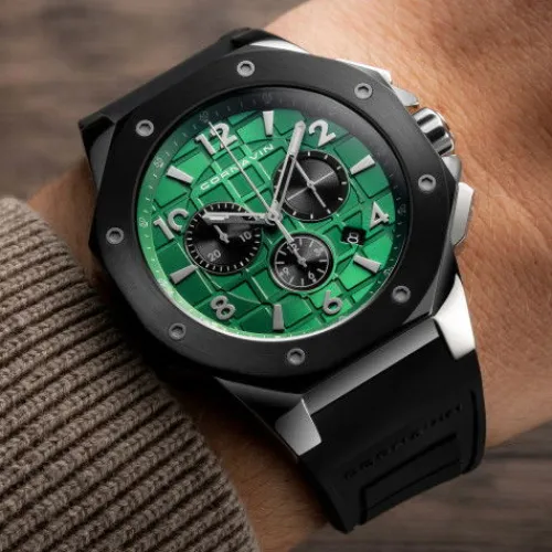 Die Cornavin CO 2012-2011R aus der Downtown Sport Kollektion hat ein auffälliges grünes Zifferblatt. Die Super-LumiNov…