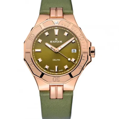 Edox Lederarmband-Delfin Diver Date Lady – 53020 37RC VR