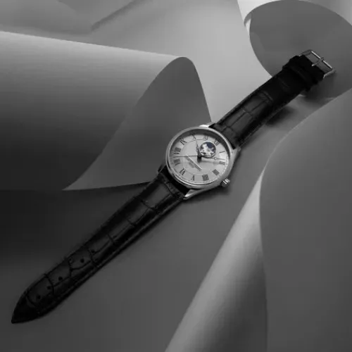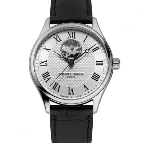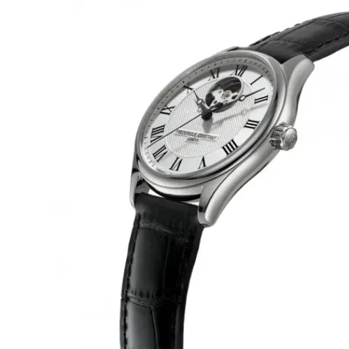 Mit einem Gehäusedurchmesser von 40 mm und dem Uhrwerk FC-310 Heart Beat Automatic präsentiert dieser Zeitmesser ein aufwendig dekoriertes Zifferblatt im klassischen Guilloché-Stil, das von traditionellen römischen Ziffern unterstrichen wird.