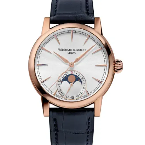 Frederique Constant präsentiert stolz die bisher exklusivste Version seiner Classic Moonphase Date Manufacture. Zum ersten Mal treibt das Uhrwerk eine Uhr aus massivem Roségold an, die hier in einer limitierten Auflage von 150 nummerierten Uhren erhältlich ist.