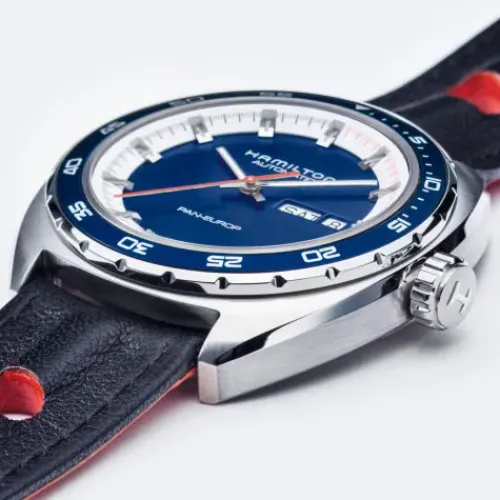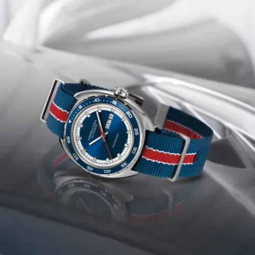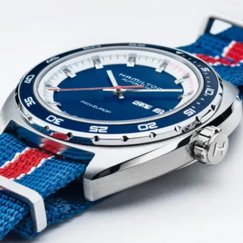 Lassen Sie sich vom Namen der Pan Europ nicht in die Irre führen – die Uhr verkörpert den für Hamilton typischen American Spirit und ist jederzeit Ihr perfekter Begleiter auf Ihrem nächsten klassischen American Roadtrip. Sie werden immer pünktlich sein, und das auch noch auf besonders …stilvolle Weise. Das Automatikwerk wird dafür sorgen, dass Sie immer in Bewegung bleiben. Wenn Sie dennoch eine Pause brauchen, sorgt die Gangreserve dafür, dass die Uhr trotzdem weiterläuft, und dank der Datums- und Wochentagsanzeige werden Sie niemals den Überblick über die Zeit verlieren. Mit einem NATO- oder Lederarmband nach Wahl zeugt das Modell von ruhiger, klassischer Vielseitigkeit.