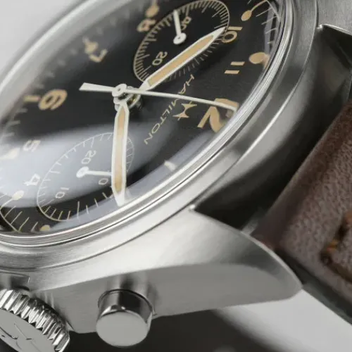 Mit seinem markanten militärischen Fliegerdesign in Vintage-Optik bringt der Khaki Pilot Pioneer Mechanical Chronograph die Form und Funktion der Chronographen zurück, mit denen die Piloten der British Royal Air Force in den 1970er-Jahren ausgestattet waren. Die robuste, zuverlässige Uhr in …40mm-Grösse wird von unserem exklusiven Handaufzugswerk H-51-Si angetrieben.