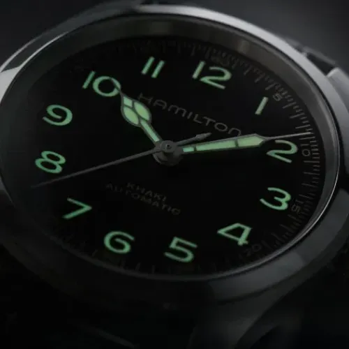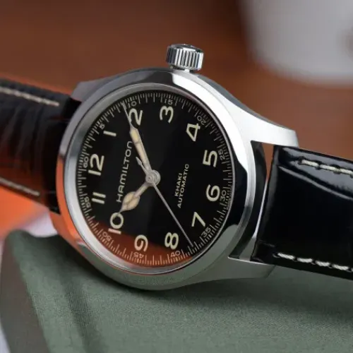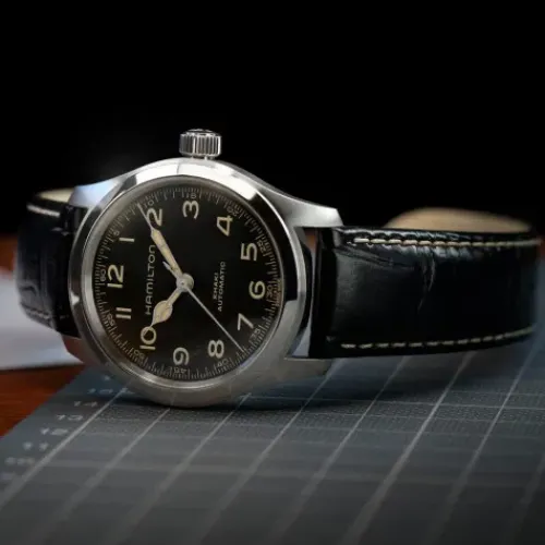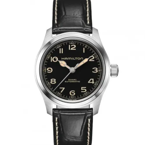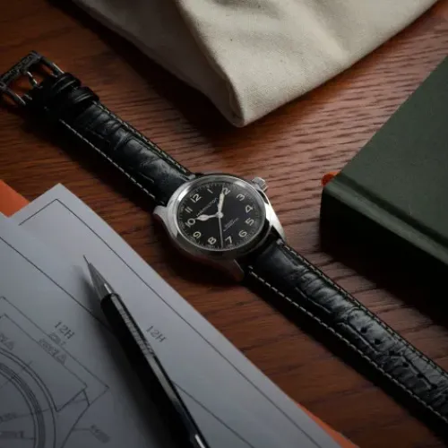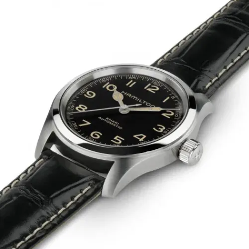Die 38mm Khaki Field Murph Auto ist da. Eine der berühmtesten Science-Fiction-Uhren, von ihren Fans «The Murph» genannt, ist nun mit einem kompakten 38-mm-Edelstahlgehäuse erhältlich. Mit ihrem extrem gut ablesbaren schwarzen Zifferblatt, beigefarbenen Zeigern mit …Super-LumiNova®-Beschichtung in Vintage-Optik und einem schwarzen Lederarmband übernimmt die neue Version die wichtigsten ästhetischen Merkmale ihrer 42-mm-Vorgängerin. Die Khaki Field Murph Auto wird vom Automatikwerk H-10 mit 80 Stunden Gangreserve angetrieben und richtet sich an all diejenigen, deren Herz für kleinere Uhren schlägt.