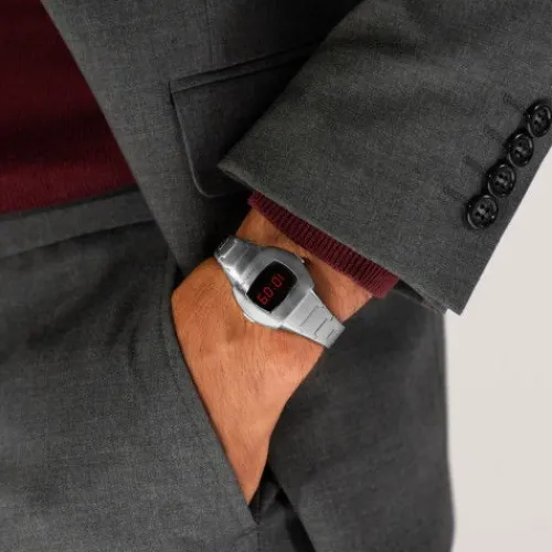 Neu interpretiert für die Gegenwart und so cool wie eh und je kehrt die PSR im gleichen unverkennbaren Stil zurück, mit der sie als erste digitale Uhr die Welt veränderte. Der Zeitmesser wurde von der Original-Vintage-Form des Cushion Pulsar Modells aus dem Jahr 1974 inspiriert und präsentiert …sich auch weiterhin im ikonischen Design des Raumfahrtzeitalters. Die PSR 74 ist mit einem brandneuen Quartzmodul ausgestattet und verfügt über das gleiche hybride Display, das die Technologien der reflektierenden Flüssigkristallanzeige (LCD) und der emittierenden organischen Leuchtdioden (OLED) miteinander kombiniert. Der neu hinzugefügte zweite Drücker verleiht der Uhr eine praktische Datumsfunktion mit rotem Ziffer-Display.