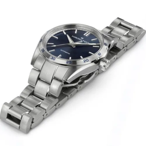 Die Jazzmaster Performer-Serie überzeugt durch ihre ausdrucksstarke sportlich-elegante Optik und ist wie geschaffen für alle, die weder auf Funktion noch auf Stil verzichten möchten. Angetrieben vom Automatikwerk H-10 mit 80 Stunden Gangreserve besitzt die Jazzmaster Performer Automatic ein …34-mm-Edelstahlgehäuse, das durch ein schlicht gehaltenes dunkelblaues Zifferblatt und ein Edelstahlarmband in starker Optik abgerundet wird.