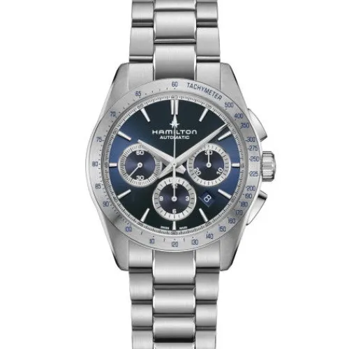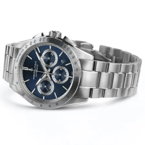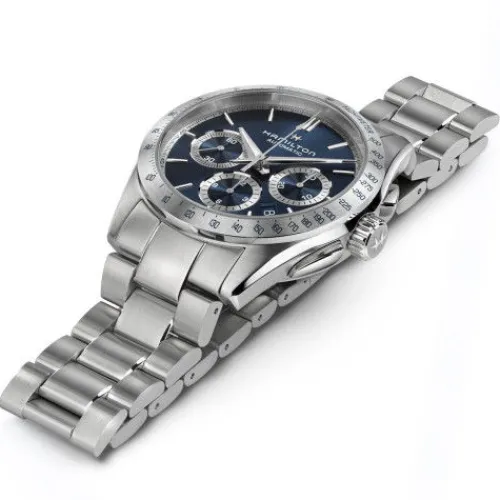 Die Jazzmaster Performer-Serie überzeugt durch ihre ausdrucksstarke sportlich-elegante Optik und ist wie geschaffen für alle, die weder auf Funktion noch auf Stil verzichten möchten. Angetrieben vom automatischen Chronographenwerk H-31 mit 60 Stunden Gangreserve besitzt die Jazzmaster Performer …Automatic Chronograph ein 42-mm-Edelstahlgehäuse, das durch ein elegantes dunkelblaues Zifferblatt und ein Edelstahlarmband in starker Optik abgerundet wird.