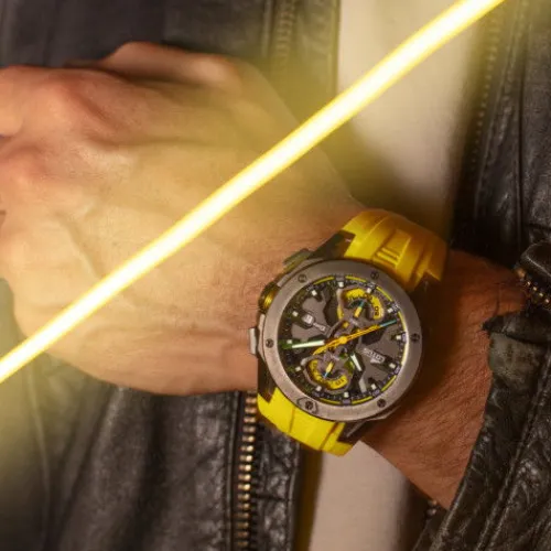 Geschlecht Herren Produktart Uhren Anzeige analog Farbe Gehäuse schwarz Farbe Armband gelb Farbe…