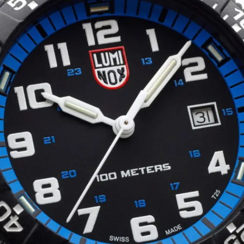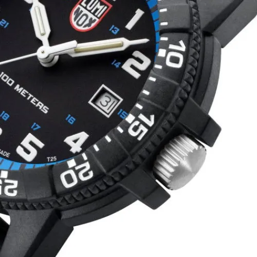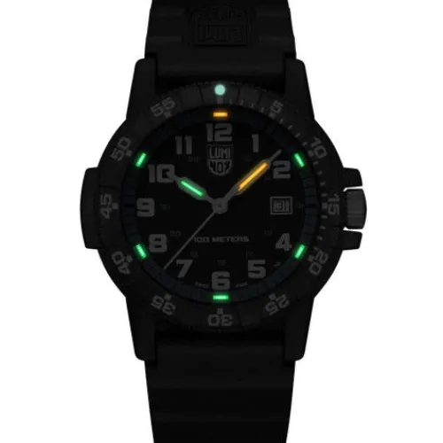 Die neuesten Leatherback Sea Turtle Uhren verfügen über ein 44 mm Gehäuse, einen Gehäuseboden und eine Lünette aus CARBONOX™. Die neue Taucheruhr mit PU-Band und Edelstahlschnalle ist wasserdicht bis 10 ATM und für den Einsatz auf dem Meer und an Land konzipiert. Wie alle Luminox-Uhren ist …sie mit der Luminox Light Technology ausgestattet, die dafür sorgt, dass dein Zeitmesser bei allen Lichtverhältnissen bis zu 25 Jahre lang sichtbar ist.