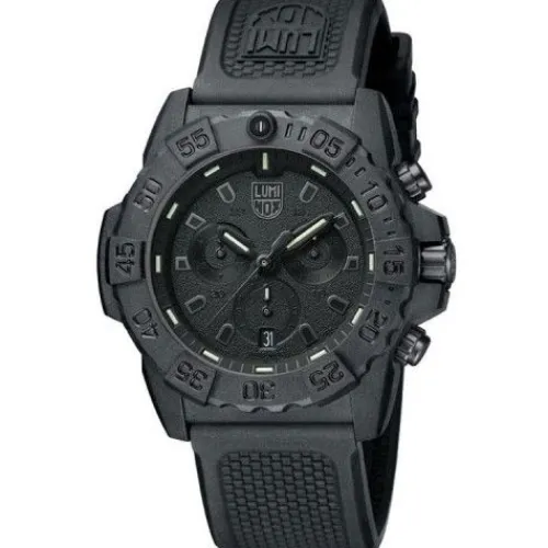 Der Luminox Navy SEAL Chronograph besticht durch sein 45 mm CARBONOX™ Gehäuse, Taucherlünette und bis zu 200 Meter Wasserdichtigkeit und kann zum Tauchen genutzt werden. Das modern Schwarz in Schwarz gehaltene Zifferblatt ist ausgestattet mit dem bewährten …Luminox-Light-Technology-Beleuchtungssystem. „Always Visible“, energieunabhängig, und das bis zu 25 Jahre lang.