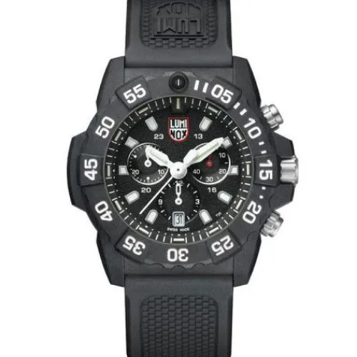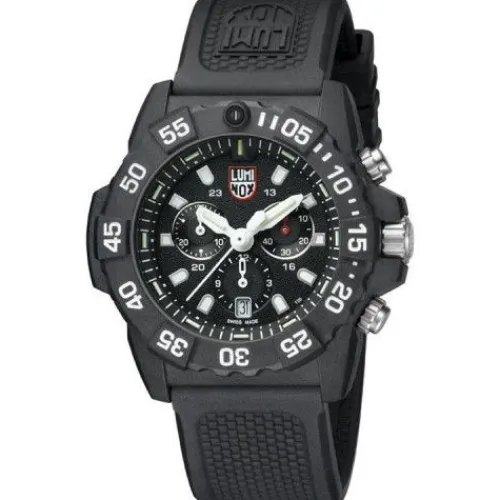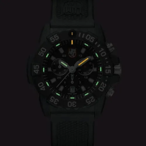 Der Luminox Navy SEAL Chronograph besticht durch sein 45 mm CARBONOX™ Gehäuse, Taucherlünette und bis zu 200 Meter Wasserdichtigkeit und kann zum Tauchen genutzt werden. Beste Ablesbarkeit am Tag dank weisser Beschriftung auf schwarzem Hintergrund. In der Nacht durch das bewährte …Luminox-Light-Technology-Beleuchtungssystem. „Always Visible“, energieunabhängig, und das bis zu 25 Jahre lang.