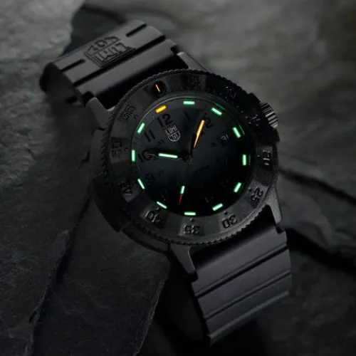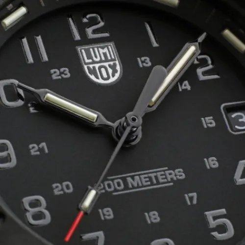 Die Black Out-Version unterstreicht die Vorteile der Luminox Light Technology. Angetrieben von dem raffinierten, äusserst präzisen und in der Schweiz hergestellten Ronda 515 Quarzwerk, verfügt das strukturierte Zifferblatt über ein Datumsfenster auf 3 Uhr und ein Saphirglas.