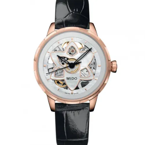 Zum ersten Mal hat Mido eine skelettierte Schweizer Uhr speziell für Frauen geschaffen. Die neue und kühne Rainflower Blossom zeichnet sich durch zarte Linien aus, die direkt von der Lotusblumenform des zeitgenössischen ArtScience Museum in Singapur inspiriert sind. Entschlossen feminine …Blütenblätter sind an den Rändern ineinander verschlungen. Das fesselnde Zifferblatt ist mit einer sich öffnenden Blume geschmückt und zeigt in seiner Mitte das Kaliber 80 – das Automatikwerk der neuesten Generation, dessen Hauptplatine speziell skelettiert und dekoriert wurde. Es lädt den Träger ein, mit Kühnheit und Eleganz über das Vergehen der Zeit zu staunen.