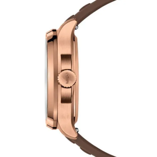 Ein genialer Rückblick! Das aus dem außergewöhnlichen Erbe von MIDO hervorgegangene Gehäuse in TV-Form kehrt bei der Multifort TV Big Date zurück auf die internationale Bühne, ebenso intensiv wie präzise, dank seines beeindruckenden mechanischen Uhrwerks. Das moderne und dynamische Design …dieser Schweizer Uhr wird durch ein markantes horizontales Zifferblatt mit gebürstetem Finish und neben seiner besonderen Funktion unterstrichen: dem Großdatum bei 12 Uhr. Das beeindruckende Automatikwerk der neuesten Generation, das Kaliber 80, ist mit einer High-Tech-Spiralfeder aus Nivachron™ ausgestattet, die eine hervorragende Widerstandsfähigkeit gegen Stöße und Magnetfelder bietet.