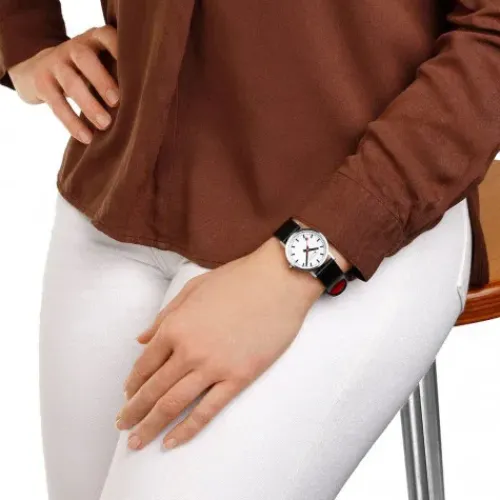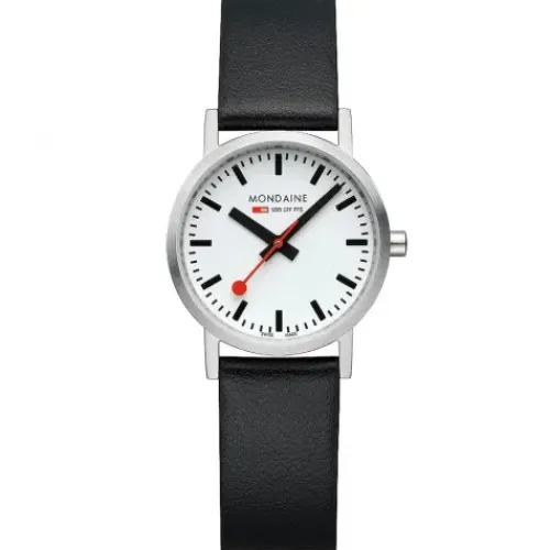 Dieser Zeitmesser aus der Classic-Kollektion zeigt das charakteristische minimalistische Design von Mondaine. Er besteht aus einem 30-mm-Edelstahlgehäuse, einem schlichten, aber schönen weißen Zifferblatt und wird von der ikonischen …roten Krone geziert. Das neue vegane Traubenlederarmband in Schwarz mit rotem Innenfutter besteht zu 75% aus pflanzlichen Öko-Verbundstoffen und zu 25% aus recyceltem PET.