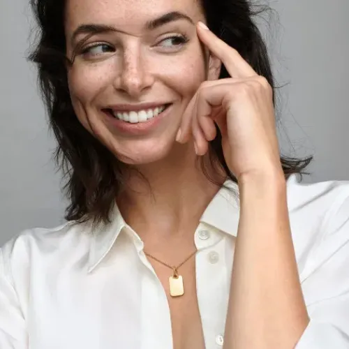 Trage personalisierte Liebesbotschaften mit diesem rosévergoldeten Gravierbares Rechteck Anhänger. Der Anhänger, den Du jeden Tag tragen kannst, ist auf beiden Seiten gravierbar. Füge auf diesem besonderen, personalisierbaren Design mit kleinem durchbrochenen Herzdetail Deine Initialen oder …eine persönliche Liebesbotschaft hinzu.