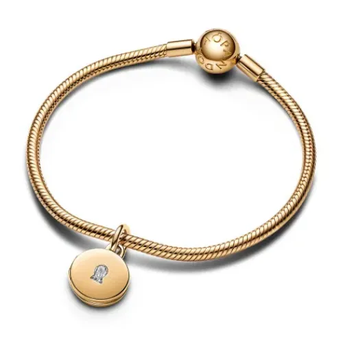 Trage das, was dir am Herzen liegt, immer bei dir mit dem Aufklappbares & Gravierbares Liebesmedaillon Charm-Anhänger. Dieses vergoldete Medaillon-Charm hat auf der Vorderseite einen klaren Cubic Zirkonia in Form eines Schlüssellochs und lässt sich sicher öffnen und schließen, sodass du ein …kleines Bild, eine Notiz oder eine Haarsträhne hineinlegen kannst. Die Innenseite des Medaillons trägt die Gravur „TODAY TOMORROW ALWAYS“ und die Rückseite ist frei für deine eigene Gravur. Trage es an deiner Pandora Moments Halskette oder deinem Armband als Symbol dafür, dass deine Liebe sicher ist, und als Erinnerung daran, sie jeden Tag zu schätzen.