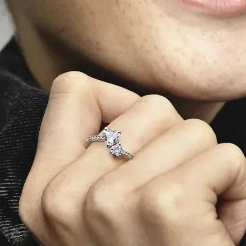 Pandora (Kette mit) Herz-Doppel Herz Funkelnder Ring – 191198C01