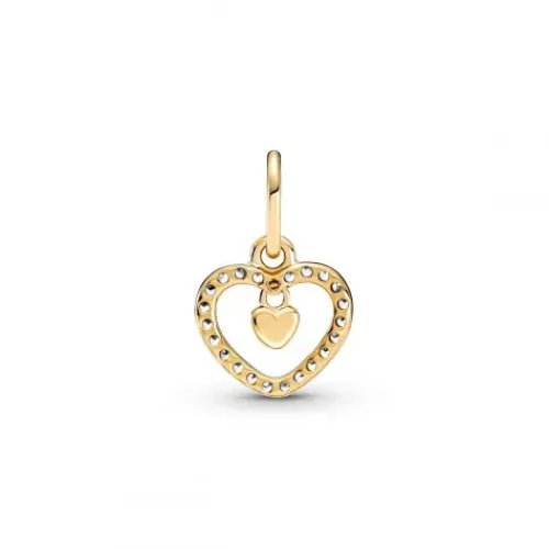Der funkelnde Doppelherz Charm-Anhänger bringt Dich zum Strahlen. Das handveredelte Design aus 14 Karat Gold zeigt einen herzförmigen Rahmen, der mit funkelnden Schmucksteinen besetzt ist und an dem ein kleines, glänzendes Herz hängt. Style dieses Schmuckstück mit anderen Charms aus 14 Karat …Gold zu einem glänzenden Look oder kombiniere es mit Designs aus Sterling-Silber, die das herzförmige Motiv besonders hervorheben. Oder verschenke es an einen besonderen Menschen als Zeichen Deiner Liebe.