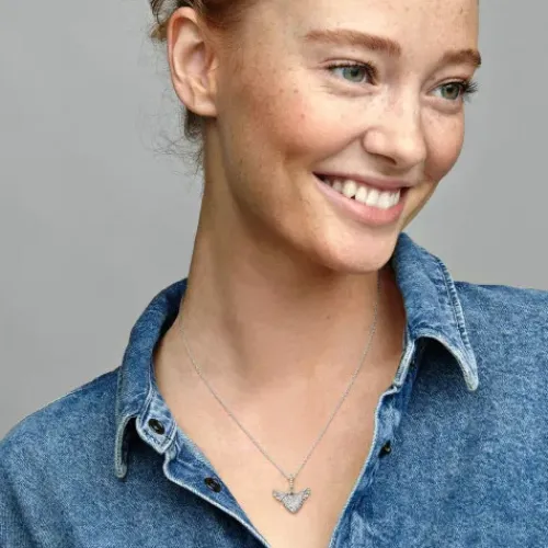 Verleihe Deinem Look einen ganz neuen Ausdruck mit einer Halskette aus Sterling-Silber, die mit himmlischen Cubic Zirkonia-Details versehen ist. Die Halskette aus Sterling-Silber trägt einen funkelnden Herzanhänger mit Engelsflügeln. Sie erinnert Dich an Deinen Schutzengel, der Dich beschützt …und immer an Deiner Seite ist. Trage sie als Symbol für die positive Energie, mit der Du alle Dinge anpackst, oder verschenke sie an einen besonderen Menschen als Symbol für Liebe und Schutz.