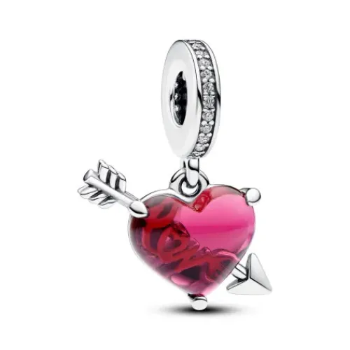 Pandora (Kette mit) Herz-Rotes Herz & Pfeil Murano Glas Charm – 793085C01
