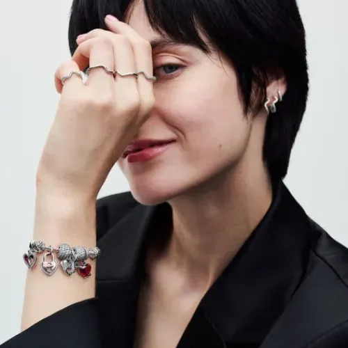 Ein Charm für alle verliebten Herzen. Der Rotes Herz & Pfeil Murano-Glas Charm-Anhänger zeigt ein rotes Herz aus Murano-Glas, das von einem Amorpfeil aus Sterling-Silber umgeben ist. Der Pfeil schreibt das Wort „love“ durch das Glas, wobei das „o“ eine Herzform für einen verspielten …Touch bildet. Eine Reihe klarer Cubic Zirkonia Pavé verleiht dem Verbindungsring Glanz. Verschenke ihn als lustige und süße Geste der Liebe für jemanden, dem dein Herz gehört.