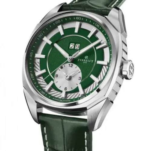 Eine innovative ästhetische und technologische Neuausrichtung, die einen neuen Zeitmesser hervorbringt. Geleitet von Kreativität und dem Wunsch, neue technologische Grenzen in der Uhrmacherei zu erkunden, hat das technische Team von Perrelet die neue LAB PERIPHERAL 3 hands & date entwickelt. …Dieser Zeitmesser bleibt den Werten und der DNA der Marke mit ihrer Signatur „Luxus in Bewegung“ treu. Diese neueste Kreation bietet eine diskrete und raffinierte Animation auf dem Zifferblatt und begrüßt einen neuen und modernen Casual-Chic-Stil in den Kollektionen von Perrelet.