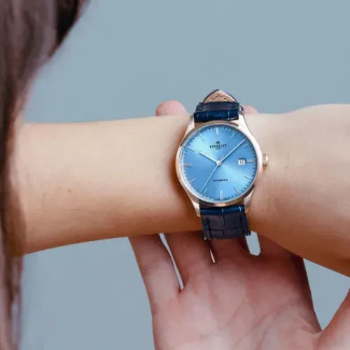 Die WEEKEND-Kollektion, traditionell zurückhaltend und dezent, nimmt neue, hellere und leuchtendere Farben an, um sich in jeder Situation hervorzuheben. Das Eisblau ist ein von der Natur inspirierter Farbton, der an die Tiefen der Gletscher und an die grauen Wolken der kalten Jahreszeit erinnert. …Eine sehr modische Farbe, ideal für Menschen mit jungem Geist, die ihren zeitgemäßen Geschmack mit einem Hauch von Kühnheit ausdrücken möchten. Diese Farbe hat eine entspannende und beruhigende Wirkung, die Stress abbaut und zu Gelassenheit anregt. Das Zifferblatt der PERRELET WEEKEND ICE BLUE ist mit dem Sunray-Finish versehen, die schillernde Lichtreflexe auf der gesamten Uhr erzeugt. Ein wahrer Augenschmaus.