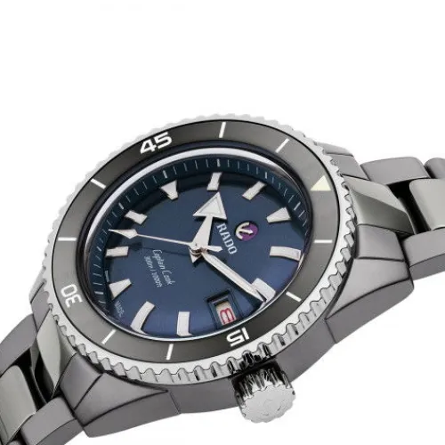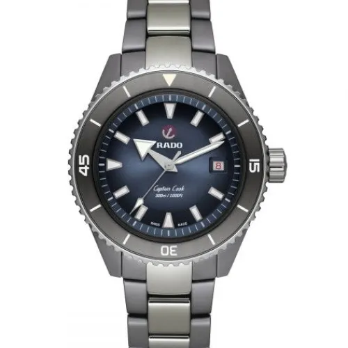 Der neue Captain Cook High-Tech Ceramic Diver ist das Ergebnis jahrzehntelanger Forschung und Entwicklung von Rado. Das mit großer Spannung erwartete Modell ist in sechs gleichermaßen beeindruckenden Ausführungen erhältlich und vereint die neuesten Produktionstechniken für Hightech-Keramik …mit den äußerst innovativen Methoden der Uhrenherstellung der Marke. Der markante Diver mit einem Durchmesser von 43 mm ist durch und durch von Pioniergeist inspiriert. Sein Automatikwerk der neuen Generation ist mit einer anti-magnetischen Nivachron™ Spiralfeder ausgestattet und bietet 80 Stunden Gangreserve. Es befindet sich in einem Monobloc-Gehäuse aus praktisch ewig währender Hightech-Keramik.