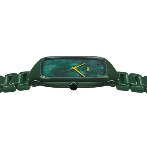 Erleben Sie mit der Rado True Square Thinline das harmonische Zusammenspiel von künstlerischem Ausdruck und Schweizer Präzision. Angetrieben von einem zuverlässigen Rado Quarzwerk vom Kaliber R420 gewährleistet diese Uhr mit müheloser Eleganz eine präzise Zeitmessung. Das 37 mm grosse …Gehäuse schafft das perfekte Gleichgewicht zwischen Stil und Tragbarkeit – damit ist das Modell für jeden Anlass geeignet. Das Gehäuse und die Krone aus polierter grüner Hightech-Keramik haben eine kühne und zeitgemässe Ästhetik und verkörpern die Essenz modernen Designs. Mit ihrer Monobloc-Konstruktion und dem flachen Saphirglas strahlt diese Uhr Langlebigkeit und zeitlose Eleganz aus. Das Zifferblatt aus grünem Perlmutt ist mit gelb lackierten Zeigern ausgestattet und mit dem Rado Logo in Gelb versehen. Perfekt komplementiert wird das Gehäuse durch ein mit Präzision gefertigtes Armband aus polierter grüner Hightech-Keramik – für einen nahtlos einheitlichen Look.