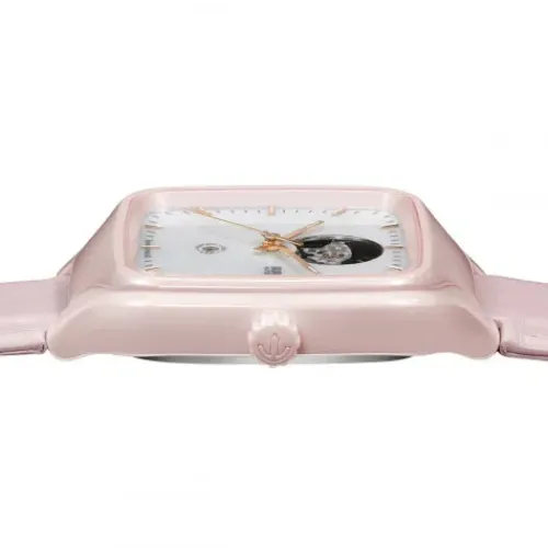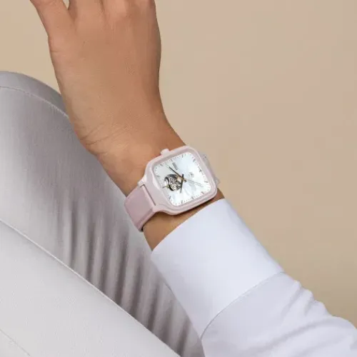 Die 38 mm große True Square Secret x Ash Barty wurde in Zusammenarbeit mit Ash Barty kreiert, ehemalige Nummer Eins der Weltrangliste im Damentennis und aktuelle Rado Botschafterin. Diese hochwertige quadratische Uhr mit 80 Stunden Gangreserve verfügt über ein Monobloc-Gehäuse aus polierter …hellrosa Hightech-Keramik. Wenn man ganz genau hinschaut, kann man einen kleinen Tennisball auf dem skelettierten Zifferblatt aus weißem Perlmutt erkennen. Außerdem wurde der Namenszug von Ash per Digitaldruck auf dem Gehäuseboden aus Saphirglas aufgetragen. Mit diesem sportlichen, auf 996 Exemplare limitierten Zeitmesser feiern wir die Laufbahn von Ash.