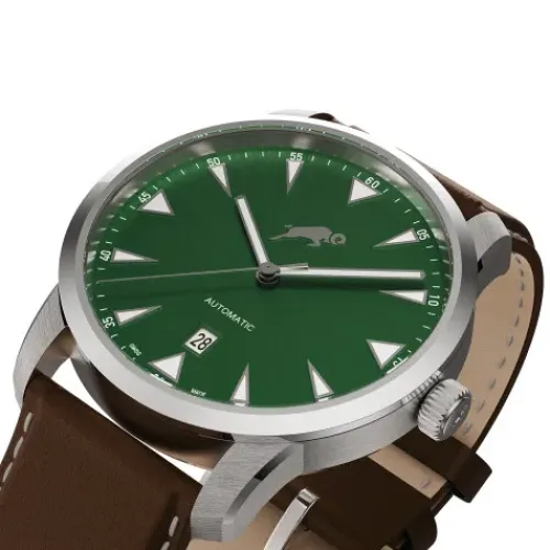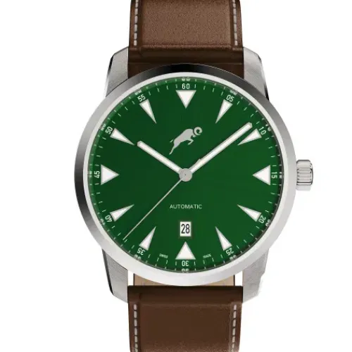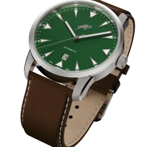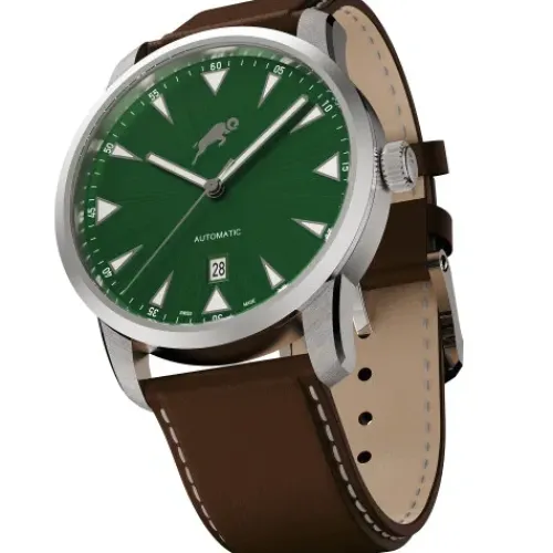 Ein besonderes Highlight ist das …tiefgrüne Zifferblatt, das der Aries 42 eine natürliche Tiefe und eine ausgewogene Frische verleiht. In perfektem Einklang mit dem Edelstahlgehäuse bringt es eine moderne und zugleich klassische Note ins Spiel – für einen Auftritt, der ebenso stilvoll wie charakterstark ist. Mit einem 42 mm grossen Edelstahlgehäuse, kratzfestem Saphirglas und klar strukturiertem Zifferblatt vereint die Aries 42 moderne Ästhetik mit traditioneller Uhrmacherkunst. Sie zeigt Stunden, Minuten, Sekunden sowie das Datum an und ist durch ihre robuste Bauweise auch ideal für den aktiven Alltag geeignet. RAM gewährt auf dieses Modell eine Garantie von fünf Jahren – ein klares Bekenntnis zu Qualität und Langlebigkeit. Ein weiteres Plus ist die Möglichkeit, aus einer Vielzahl an austauschbaren Armbändern zu wählen (separat erhältlich). So lässt sich die Uhr jederzeit individuell an Stil und Anlass anpassen – für einen Auftritt mit Charakter und Flexibilität. Diese Wandelbarkeit macht die Aries 42 zum perfekten Begleiter für alle, die Wert auf Abwechslung, Qualität und Eleganz legen. Das fein verarbeitete Edelstahlgehäuse kombiniert polierte und gebürstete Flächen zu einer dynamischen Optik und sorgt für ein angenehmes Tragegefühl. Die RAM Aries 42 ist Ausdruck von Schweizer Handwerkskunst – für Menschen mit Sinn für Stil, Präzision und Beständigkeit.