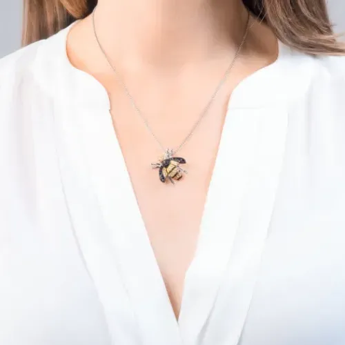 Der Bernie Bienen Anhänger ist ein Meisterwerk aus hochwertigem 925 Sterling Silber, das die Anmut und das Engagement der Bienen symbolisiert. Die geschwärzte und vergoldete Oberfläche betont die feinen Details und verleiht dem Anhänger einen Hauch von Antike und Eleganz. Die gelben und …schwarzen Zirkonia-Steine wurden sorgfältig platziert, um die charakteristische Farbpalette der Bienen nachzuahmen. Der Anhänger wird durch die funkelnden Steine zum lebendigen Blickfang. Die perfekte Kombination aus Gelbgold und geschwärztem Silber verleiht ihm einen einzigartigen Kontrast.